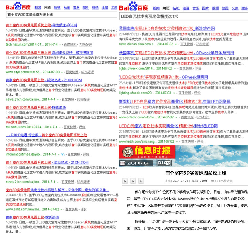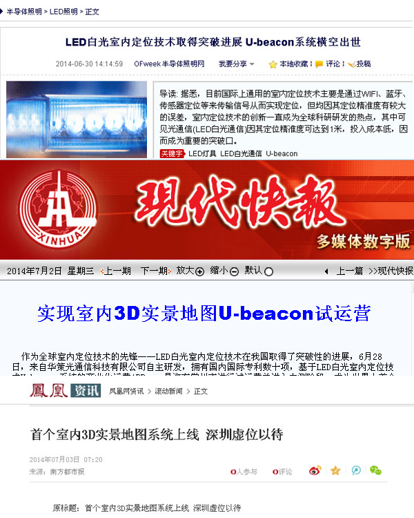 On June 28, self-developed by The Great Aim Optical Communication Technology Ltd and possessing tens of international and domestic patents, a commercial operation APP-‘easy shopping’ adopting a U-beacon system based on the white-light LED indoor positioning technology has put into trial operation and entered a private beta phase in Changzhou city, Jiangsu Province, and achieves both commercial operation and the 3D indoor real map light positioning technology firstly in the world. The news that the APP would be introduced into first-tier cities of Guangzhou and Shenzhen firstly and then promoted comprehensively after the private beta phase is completed has attracted widespread attention and was reported by tens of media such as NetEase News, Sina Finance, Phoenix Infonews, Southern Metropolis Daily and Shenzhen Evening News.