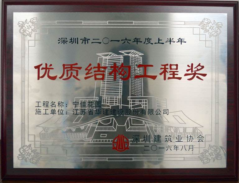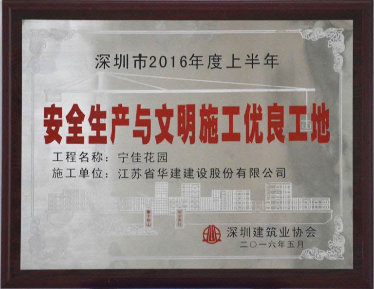 The person in charge of the project expressed, since its commencement, Ningjia Garden project has been built under the tenet of "Quality Comes First". Under the strict requirements of high quality, high level and high standard, Jiangsu Huajian has improved quality continually in the course of construction and building. It is required to maintain a high safety awareness in the construction site, but also focus on implementing green construction in engineering structure, pay attention to the protection of natural environment in areas such as Longgang River, keep the whole process under control. Faith can move mountains. Ningjia Garden project has won double honors "Excellent Site for Production Safety and Civilized Construction" and "Award for Excellent Structural Engineering" of Shenzhen in the first half of 2016 for its solid strength and ceaseless efforts.