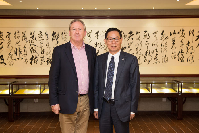 Yang Feng chairman of the group and David Thomas, president of SME Association of Australia, posed for a photo