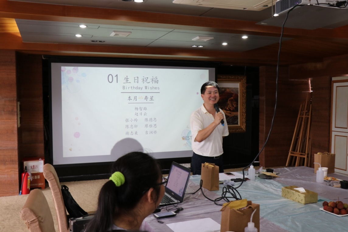 Director and CEO Zhao Riyun,on behalf of all those burn in June,is expressing her birthday feelingDifferent from previous birthday parties,this time there was the simple and fresh succulent plant growing link rather than funny games.This birthday party was aimed at making all participants feel relaxed in busy work.In this link,the participants helped each other in planting,which added happy laughter to the birthday party.